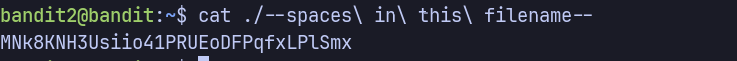 ssh bandit2@bandit.labs.overthewire.org -p 2220 # 263JGJPfgU6LtdEvgfWU1XP5yac29mFx