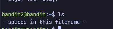 Password for the next level is stored in a file called --spaces in this filename-- located in the home directory