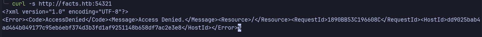 Returns an AccessDenied error, indicating authentication is required. We’ll need valid credentials to enumerate further.