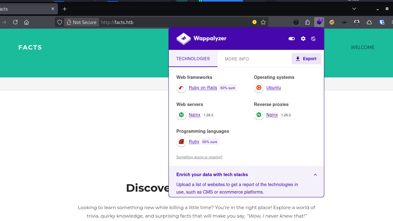 Facts is an Easy-rated Linux machine featuring a Ruby on Rails CMS called Camaleon. The attack path involves exploiting:
